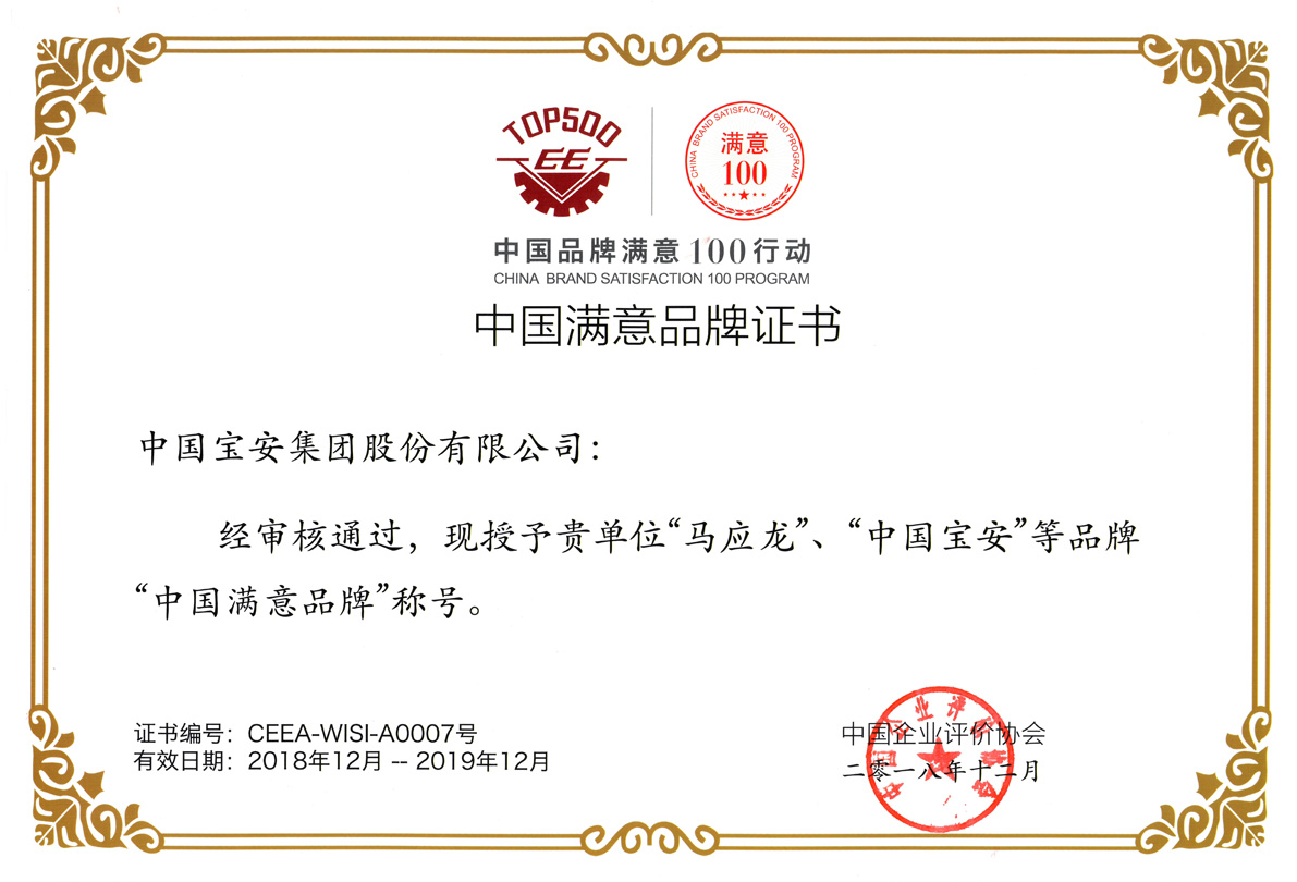 12月8日,首届中国满意品牌高峰论坛在北京钓鱼台国宾馆举行,集团所属“中国安博电竞·(中国区)官方网站”“马应龙”两大品牌荣获“中国满意品牌”称号。集团与中粮集团、北汽集团、深圳航空等32企业成为首批“中国满意品牌”企业。