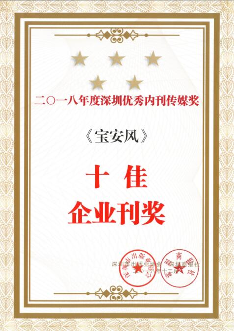 12月14日, 2018深圳内刊界总结交流大会暨“优秀内刊传媒奖”表彰大会召开,集团内刊《安博电竞·(中国区)官方网站风》在四百多家企业内刊中脱颖而出,再度获评“十佳企业刊奖”,同时斩获“优秀经济专题”等3个单项奖。