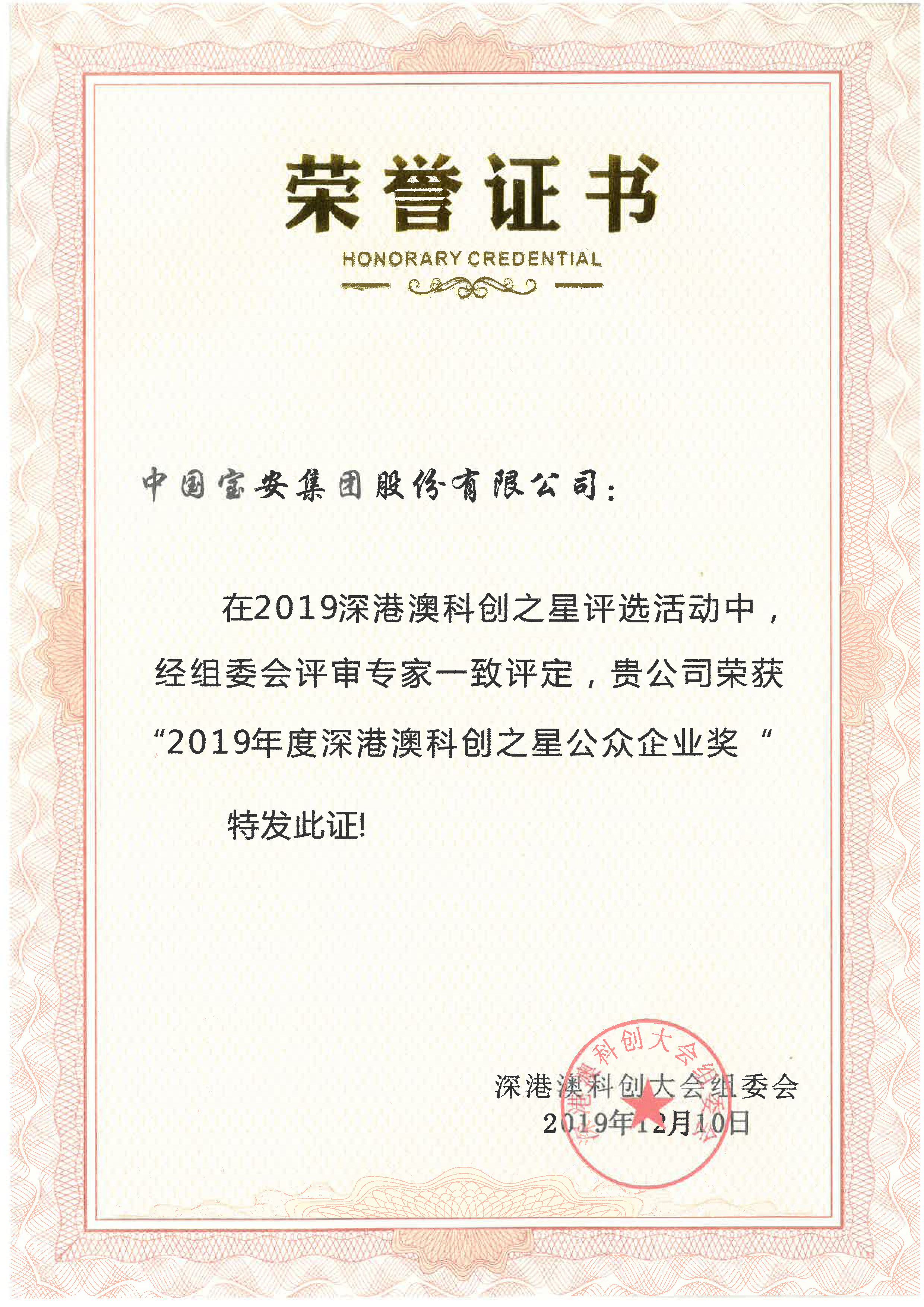 1210日,2019年深港澳科创大会暨科创之星颁奖典礼在深圳召开,集团荣获科创之星公众企业奖。
